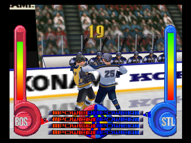 Unlike the first Blades of Steel, which was released in the early days of sports games when licenses were hard to come by, Blades of Steel 99 features full NHL and NHLPA licenses. This means that you can play as awful, blocky representations of all your favorite players from your favorite team, with correctly colored uniforms and logos that looked accurate if you squint and tilt your head.