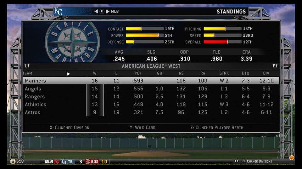 In the original 2014 timeline (2014 Prime), the Kansas City Royals finished April with a record of 14-12, which was good for 1.5 games back in the division. The results in the newly-created timeline… weren’t much different. As a result of temporal instability, an extra game was played in April and the Royals ended the month 15-12 and .5 games back in the division behind the Tigers.