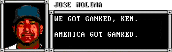 The team hoped that Molina’s pitch framing skills would be especially helpful to Strike-O-Matic, who was putting up an exceptional season already but had some difficulty limiting walks. Strike-O-Matic could dial up his pitches to 102, and throw five different variety of fastball, but couldn’t always get any of it over the plate.