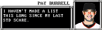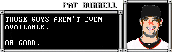 Indeed, there were a surprising number of players available. And, of course, these weren’t the only guys who could be acquired in the right deal. This left Burrell with a new dilemma. Who should he acquire to bolster the team? He did the only thing he could think of: he gave the list above to his teammates and asked for their advice.