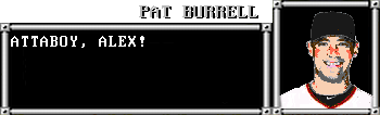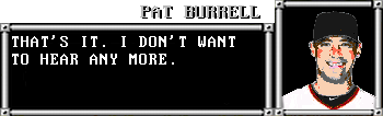 And, as usual, the Kansas City Royals were not particularly helpful to Pat Burrell. Rather than giving anything close to useful advice, they advanced their own personal agendas and occasionally ventured offensive comments regarding the state of the financial industry. Burrell had to rely upon his own wiles, meaning that he drafted the player with the highest power rating first and then basically chose the most interesting names.
