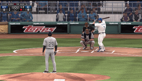 So at least they stopped the perfect game. For the most part, Strike-O-Matic matched Tanaka, and even held down Flash Money for his first two at-bats. None of the other Royals pitchers had managed to stymie the robot leadoff hitter, but Strike-O made quick work of him to start.