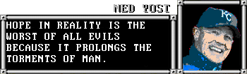 As soon as Ned Yost was in the Kauffman Stadium maintenance closet, Burrell closed and locked the door behind him. It wasn’t an act of cruelty–there was plenty of food and water inside. It was an act of desperation. While managers don’t make or break a game, Burrell knew that it would help to have Yost out of the team’s hair for a couple games. There would be no more mid-fifth inning defensive replacements for Eric Hosmer, or poor usage of closer Greg Holland, or whatever the fuck this was back in May: