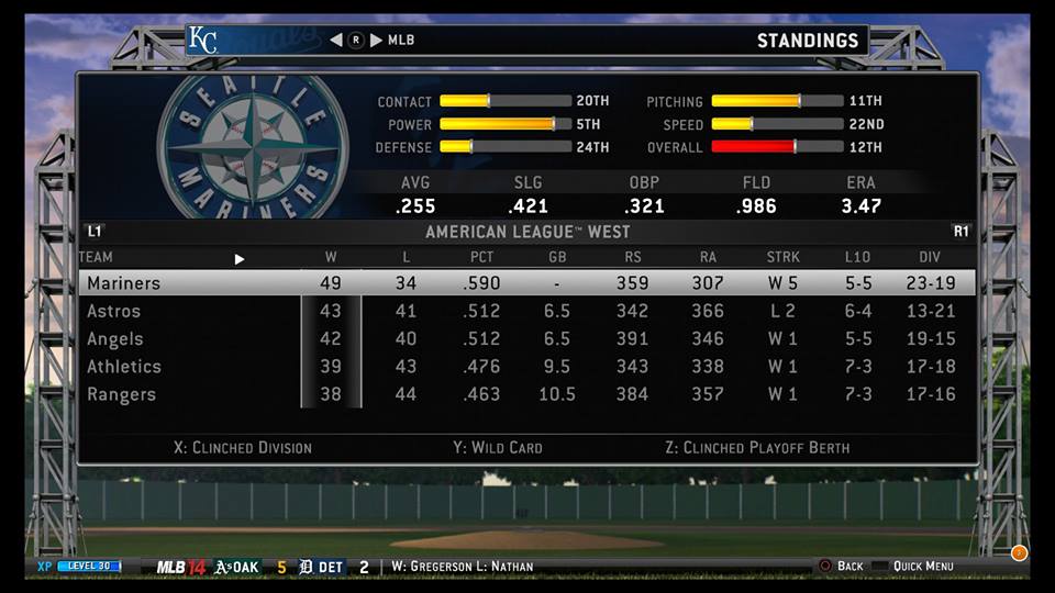 The division continued to be led by the Mariners, through a mixture of Hisashi Iwakuma, Robinson Cano, black magic, and bunting.