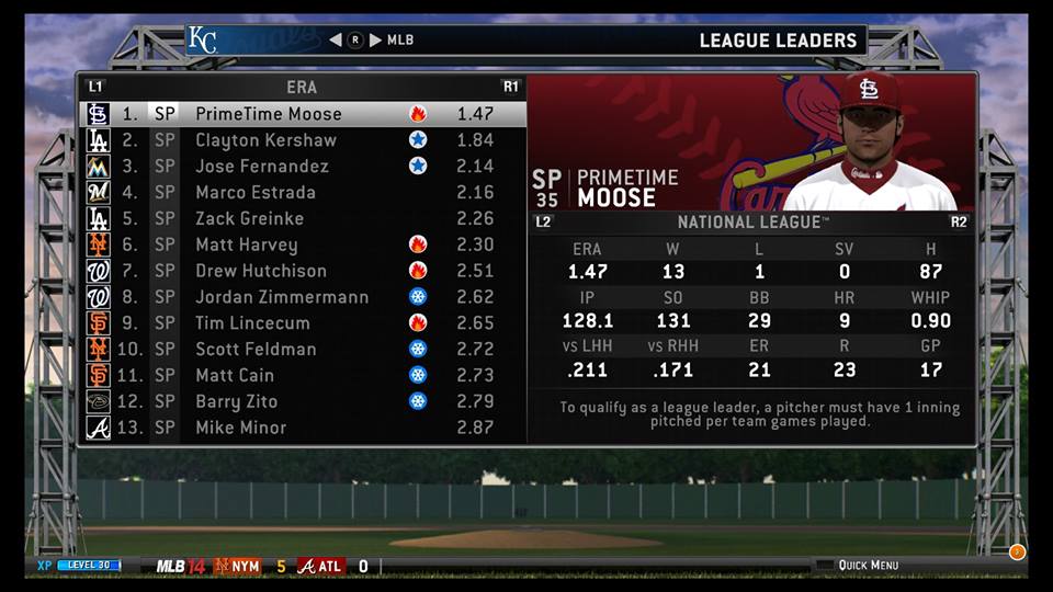 In the National League East, the multiple hitters the Braves had on the NL Leaderboards weren’t doing enough to hold off the Washington Nationals. It was still a close race, but so far the Braves didn’t have the pitching to compete. Mike Minor was their best starter in the first half, which is never a good situation to be in. The excellent hitting of Dixie Dirtbag, Freddie Freeman, and the unexpected Dan Uggla weren’t enough to make up for the deficiencies on the mound. Meanwhile, even the portly Ray King, fresh out of retirement, managed to hold down opposing teams well enough to give Bryce Harper, Jayson Werth, and friends a shot at a win in almost every game.