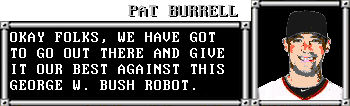 Dubya Bush was unique amongst the robot masters. In the early days of the transition from human players to robot players, most of the AI routines were based off of the playing style of retired human players. However, the pool of players willing to become immortal scabs and undermine the labor power of their successors was limited. MLB had to go elsewhere for AI routines to install in their robots.