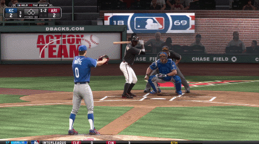 The Royals went down 1-2-3 in the top of the first inning. A couple of fluke hits, including a triple by Paul Goldschmidt(!) in the bottom of the frame gave the Diamondbacks a 1-0 lead, and it seemed as if everything was going to plan. That didn’t mean that the Royals and Strike-O-Matic couldn’t pursue some personal goals, however, and this happened during the fourth at bat of the game: