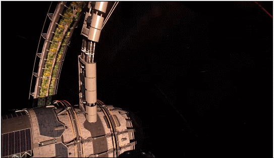 My salvation, this refueling point, was a refinery station nearby the only planet in the star system. It was small, asymmetrical, and poorly lit. Pipes and mechanical miscellanea stuck out every which way. Now, for some context, the large space stations in major systems are massive, bright, twirling monstrosities, thousands of times the size of your ship, with 30+ enclosed docking platforms. This out-of-the way refinery had two docking platforms, and they were on slapped on the surface of the structure. There was nothing much for sale there, only a couple rote missions on the billboard. There was no reason to even drop out of hyperspace for this podunk station unless you were like me, on a long trip and needed fuel.