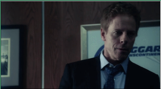 In keeping with the fine tradition of continuity, the entire film has been recast once again. Gone is Samantha Mathis as Dagny Taggart, replaced by Laura Regan who you might recognize as (a) Harry’s wife on Mad Men or (b) the actress who portrays Robin Wright’s character in Unbreakable during flashbacks. That’s how little there is to say about her. Hank Rearden is no longer a mob boss, but played by Rob Morrow (in theory; we’ll get to that later). And the standout of Part II, Patrick Fabian, is sadly missing in action as James Taggart, but gleefully replaced by yet another in the revolving door of unsettling expressive actors, Greg Germann. Or, as you probably know him, Fish from Ally McBeal.