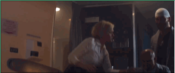 The passengers had remained (relatively) calm up until now, but this is the breaking point. All sorts of shit begins to go down. The rich heiress shoots up and starts talking about how none of this is real. And the angry little person decides that this is clearly the fault of the Muslim, even though that makes absolutely no sense.