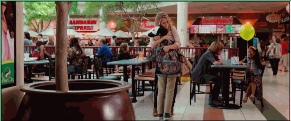 While Chloe is distracted by the breakdancers, her little brother wanders off to go look at a toy drone. She panics for a second, finds him, and breathes a sigh of relief. We’re now thirty minutes in and no one has been raptured. Fortunately that’s about to change. Chloe gives her brother a hug and well…