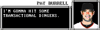It seemed as though Strike-O-Matic and Pat Burrell didn’t have much to worry about as the trade deadline approached. But then one morning, shortly before a press conference to honor him for yet another MLB Rookie of the Week award, Strike-O-Matic injured himself by trying to iron his shirt while he was wearing it. Of course, he was a machine, so this wasn’t really a problem. He just needed to repair the damage to his artificial skin and reboot. But in the process of restarting his internal computer, Strike-O-Matic regained all of the memories he had lost during the time travel process.